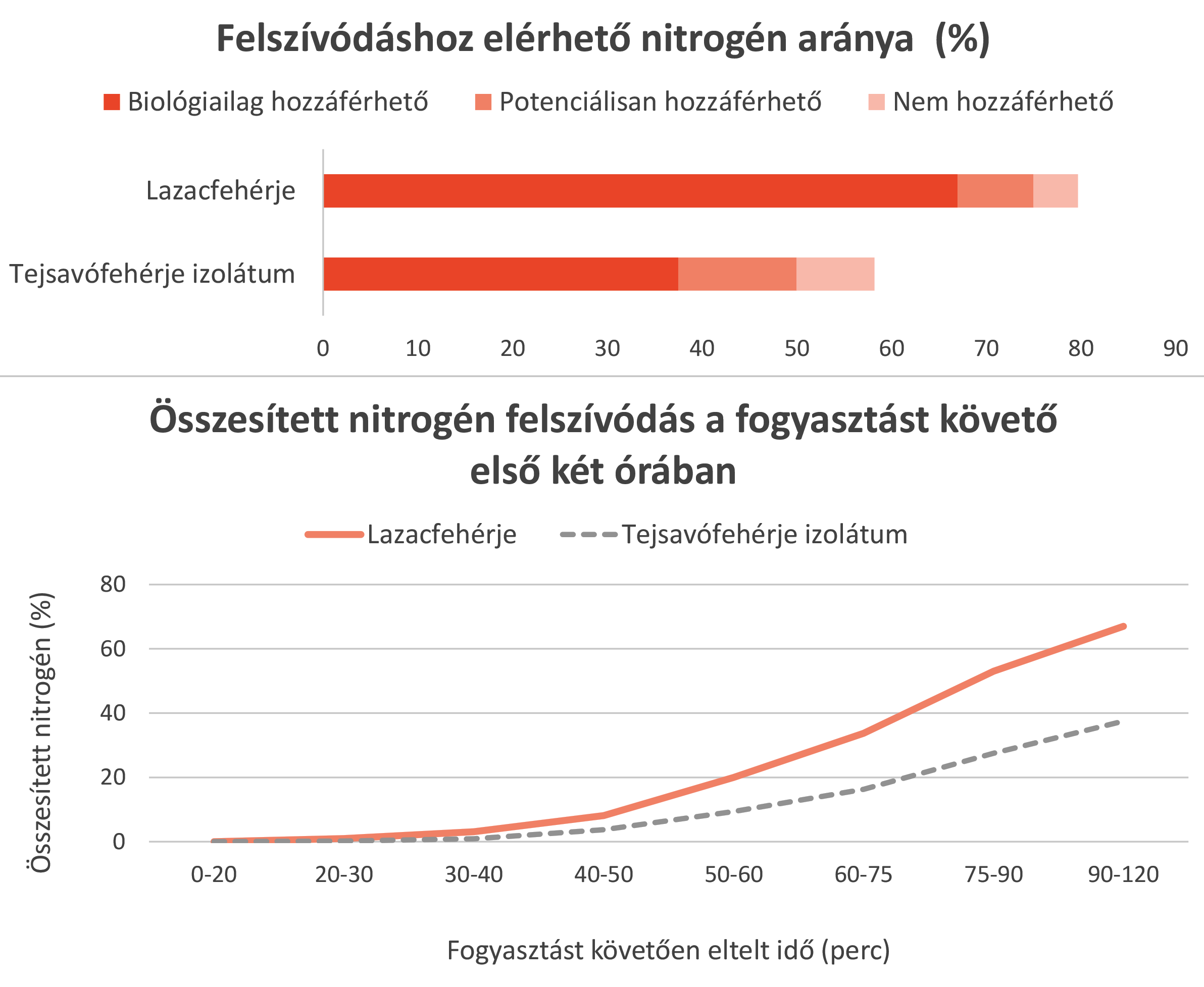 A lazacfehérje a fogyasztást követő első két órában 79%-kal több nitrogént biztosít a szervezetnek, mint a tejsavófehérje izolátum.
